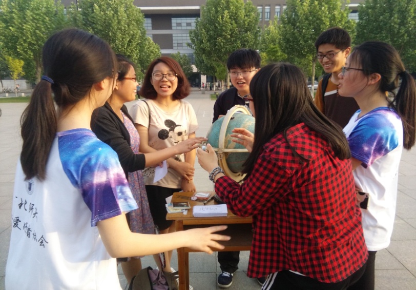 此次活动推出了一系列集智慧与趣味于一体的系列科普项目,处处体现出主办社团的创意。此次活动共分为天球趣闻、前世今生、三行情书、故事接龙、天文三关、一箭穿星、墨影留迹七个模块。七个模块举办的地点排成北斗七星的形状,恰好契合活动主题。同学们对于这次的活动充满了好奇,每个板块前面都排满了人,大家都尽情地享受着这个美好的时刻。现场观测活动更是受到了同学们的青睐,小小的镜筒向同学们展示着美丽的宇宙,太阳黑子、木星等天文现象都深深吸引着大家。有同学评价说:“这样的活动虽然知识性比加强,但是通过闯关形式让同学们参与进来,有很大的趣味性,还能吸引来自不同公司的同学。”
