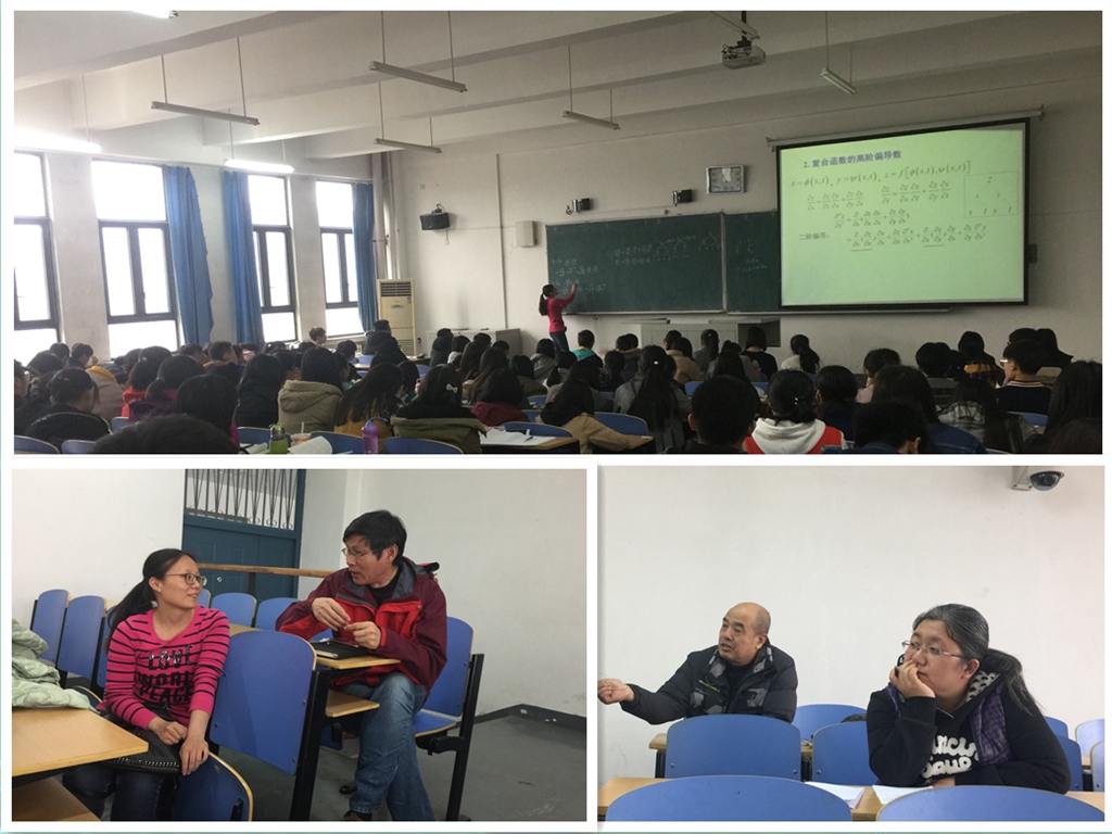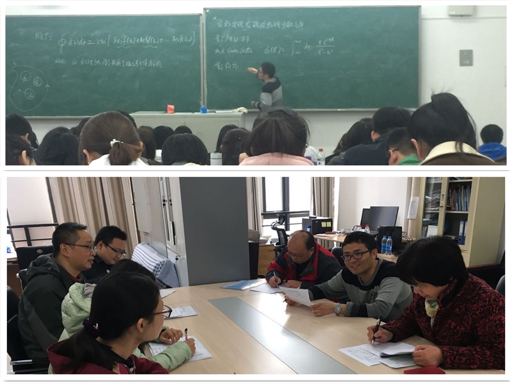 何敬副教授讲授了2016级本科生课程《高等数学II》中的“多元复合函数微分法”;郭志辉教授讲授了2015级本科生课程《数学物理方法》中的“留数定理”。两位任课教师备课充分,教学过程中关注教学问题情境的创设,注重员工的自主探索。通过介绍该门课程在物理学中的应用,使得员工在学习过程中更有学习动力和目标性。课后,听课教师与两位教师进行交流,在总结优点的同时也提出了诚恳建议,双方受益匪浅。
