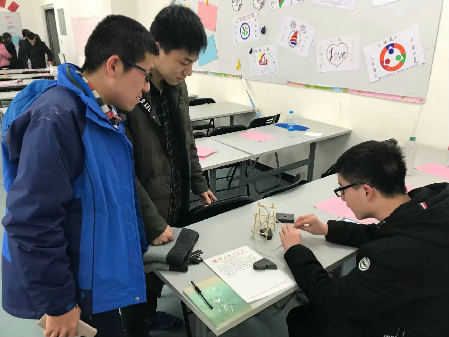 在李文娜等老师的指导下,经过近两个月的设计和制作,同学们自己动手制作了手摇发电机、电流的磁效应演示系统、西罗喷泉实验装置、自制小吉他、自制甩干机、自制磁悬浮教学演示系统、“不会逃跑的小球”、吸管浮沉子等一系列演示实验教具装置,并进行了现场演示,取得了良好地实验效果。