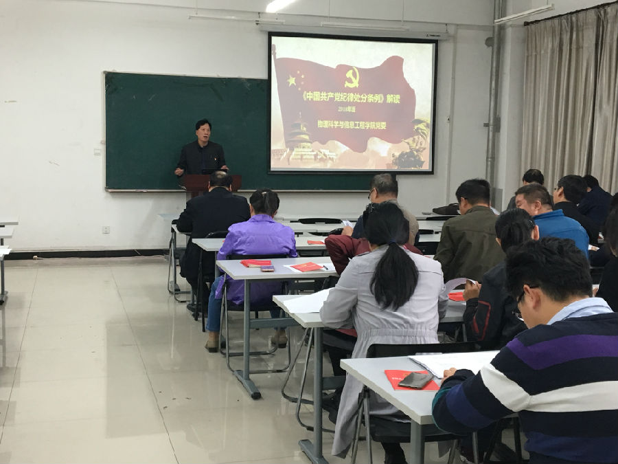 杨连祥同志从《条例》的历次修订切入,重点围绕政治纪律、组织纪律、廉洁纪律、群众纪律、工作纪律、生活纪律等六大纪律,对《条例》的修订作了深刻解读,并对《条例》的内容、条例的八大亮点作了进一步分析。他指出,新修订的《条例》以习近平新时代中国特色社会主义思想为指导,突出政治性,彰显时代性,增强针对性,党员要自觉规范日常行为,时刻警惕纪律“高压线”,始终保持党的先进性和纯洁性。他强调,《条例》的修订体现了党要管党、全面从严治党的一贯要求,党员同志要把《条例》作为行为准则,要树立规矩意识、红线意识和底线意识,用铁的纪律规范自己的言行,在今后的工作进一步加强对《条例》的贯彻执行。