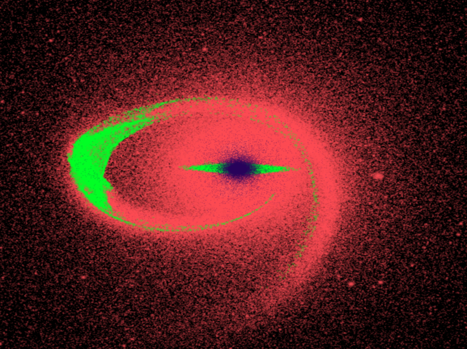 图一:人马座矮星系对于银河系扰动的示意图(绘图:王海峰)