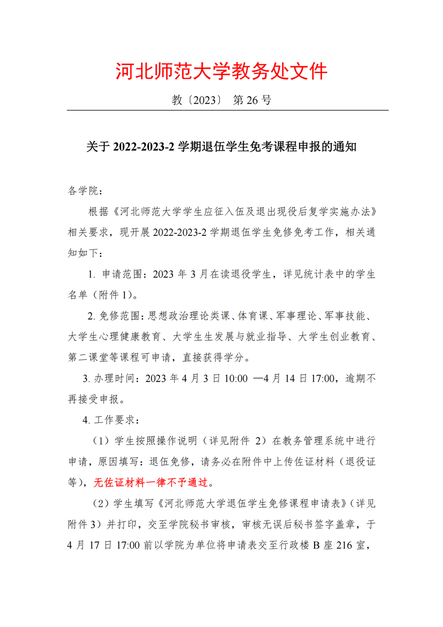 关于 2022-2023-2 学期退伍员工免考课程申报的通知
