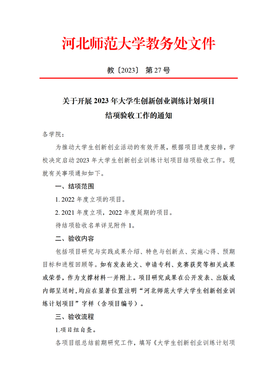 关于开展2023年老员工创新创业训练计划项目结项验收工作的通知