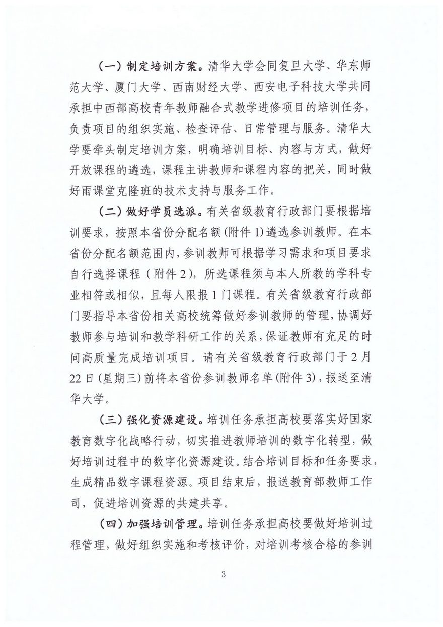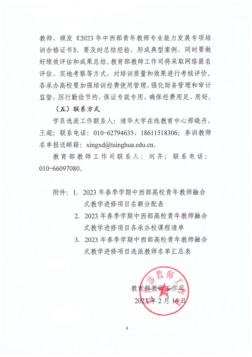 关于组织实施2023年春季学期中西部高校青年教师融合式教学进修项目的通知