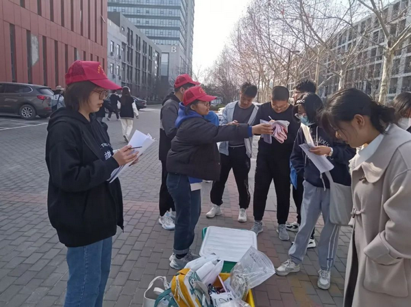 公司志愿服务队员前往服务站点,开启校园清洁、摆放单车、折叠纸花和闲置物品义卖四个志愿服务活动。