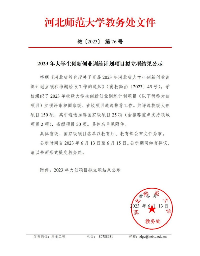 2023年老员工创新创业训练计划项目拟立项结果公示