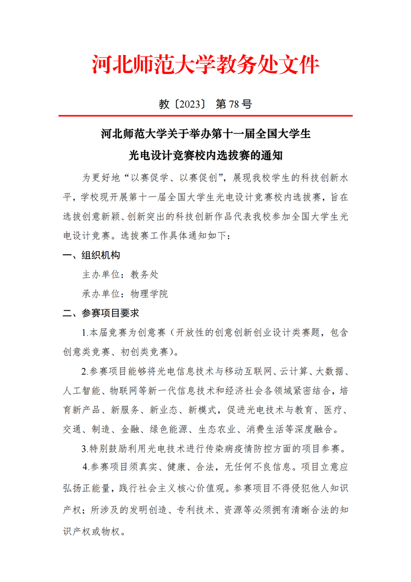 304永利集团关于举办第十一届全国大学光电设计竞赛校选拔赛的通知