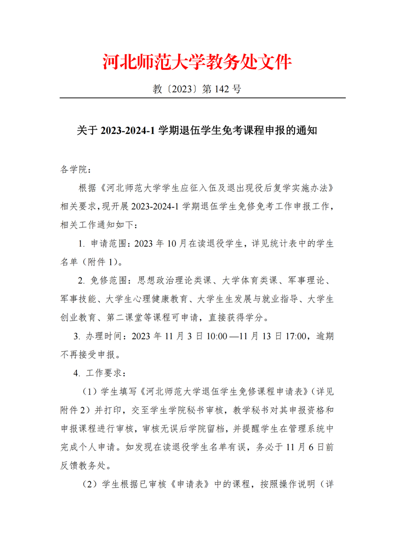 关于2023-2024-1学期退伍员工免考课程申报的通知