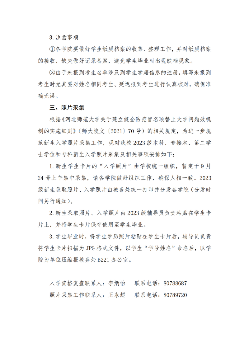 关于做好2023级新生入学资格复查工作与照片采集工作的通知