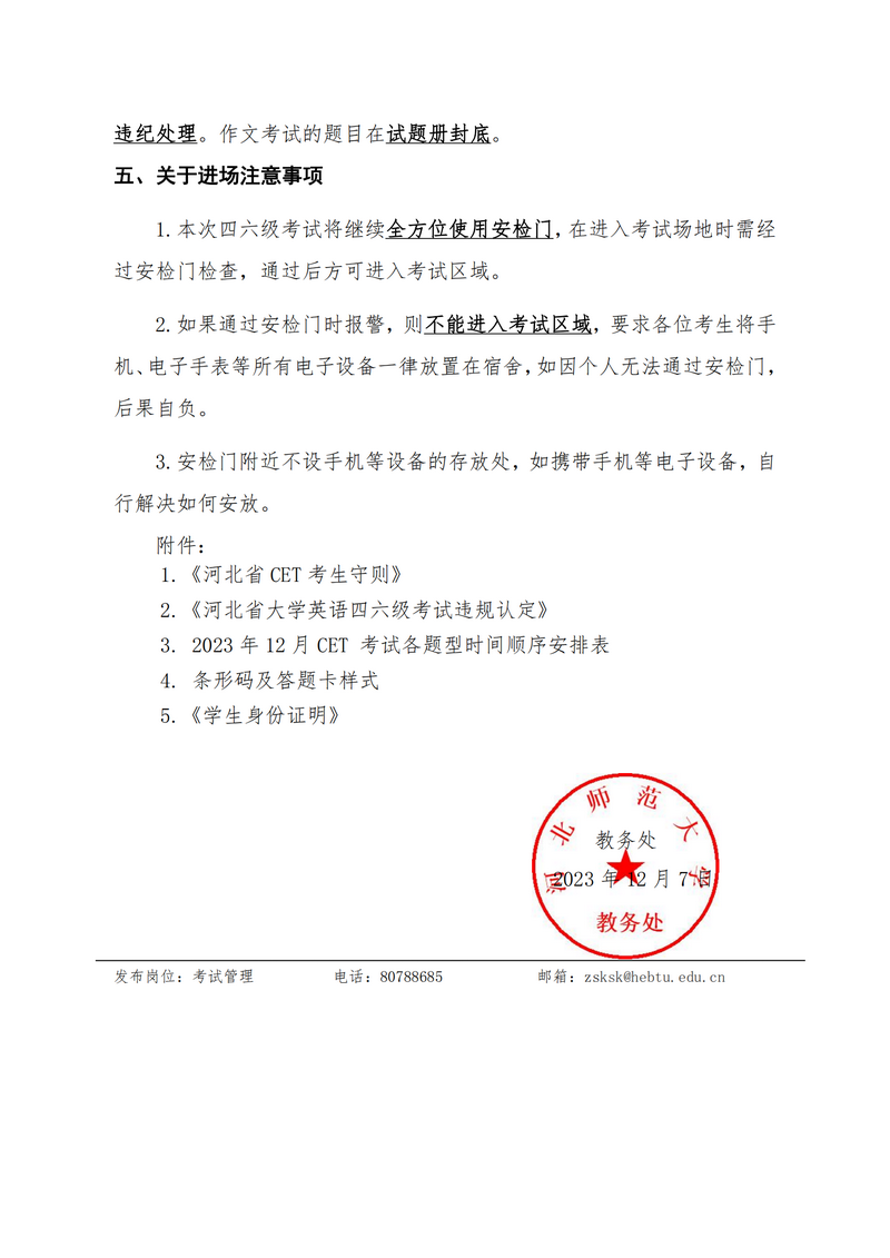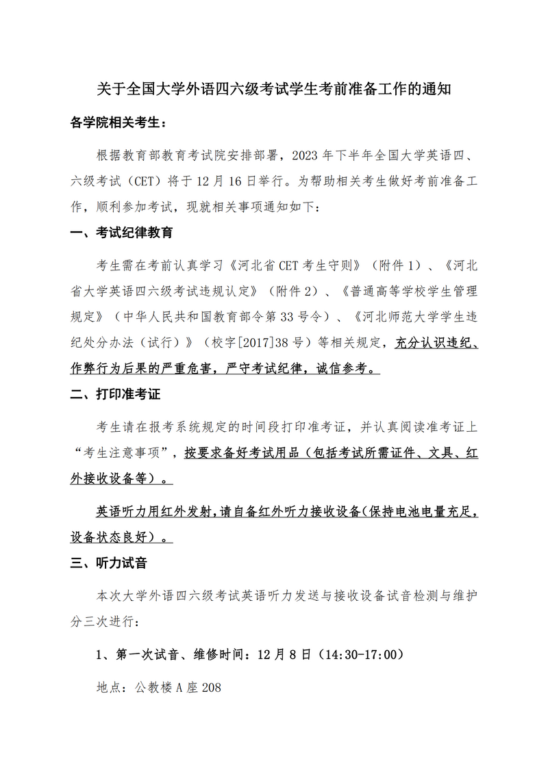 304永利集团2023年12月全国大学外语四六级考试考前提醒