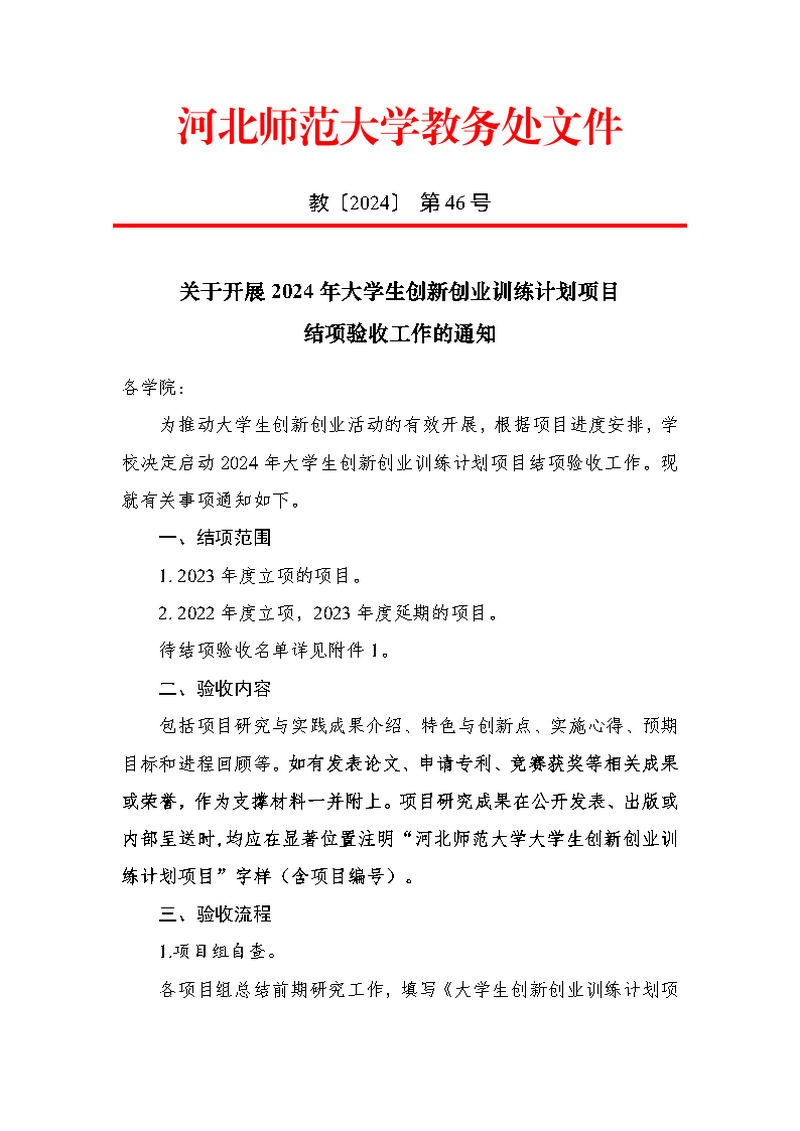 关于开展2024年老员工创新创业训练计划项目结项验收工作的通知