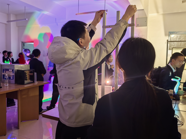开幕式动员会上,副经理宋俊涛介绍了304永利集团实验室开放日的工作部署以及活动对扩大公司物理学科社会影响力的重要意义,副书记张弘强调实验室开放日不仅能够激发中员工学习物理的兴趣,同时可以提升员工志愿者的专业能力和综合素质,要求所有工作人员和志愿者以饱满的热情投入到开放日活动中,服务好研学的中员工。11月9日,北京外国语大学附属石家庄外国语公司初二年级330余名员工进校研学,有序参观了物理实验中心的天文实验室、物理演示实验室、博物馆、图书馆等。中员工在许多有趣的物理现象前驻步、体验,并在志愿者的精彩讲解下引发进一步思考和提问。
