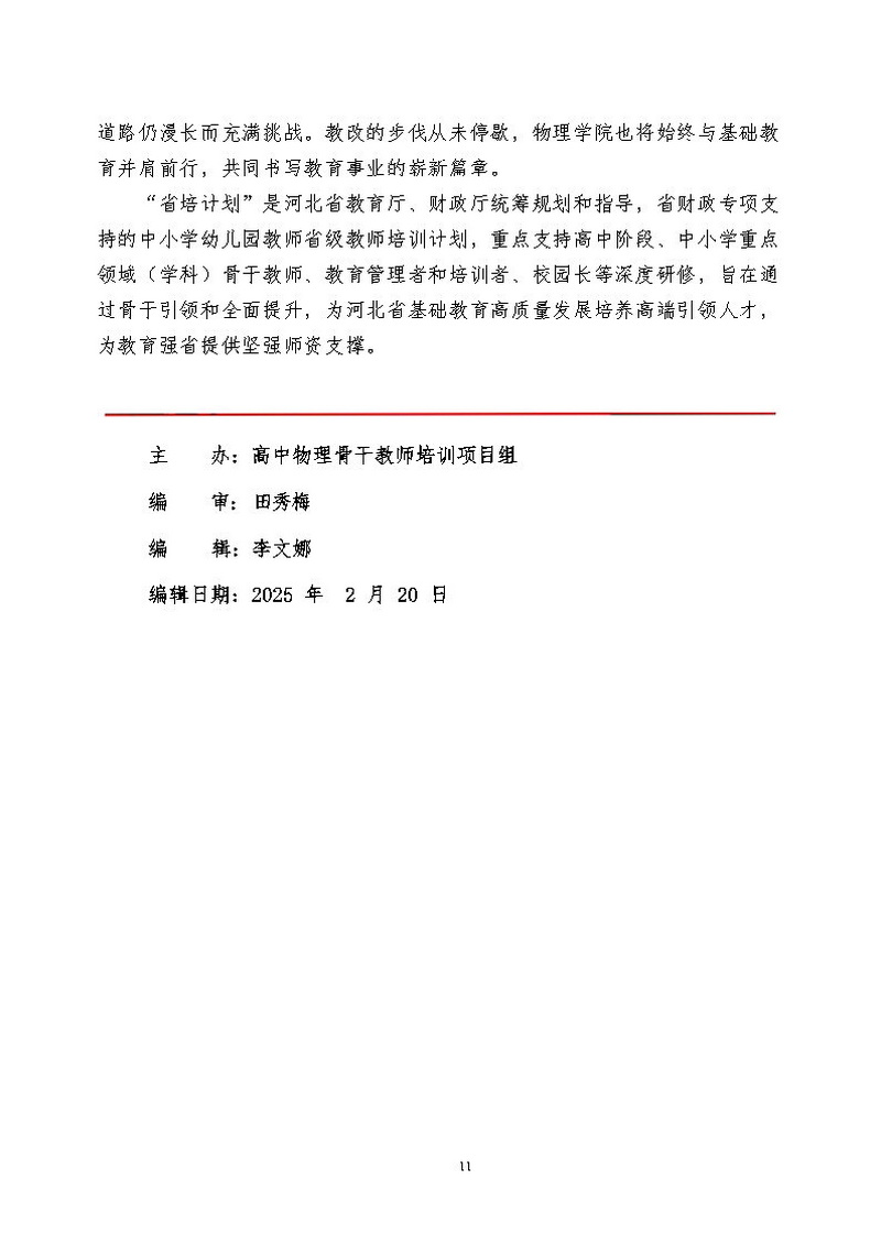 “省培计划(2024)”省级骨干教师培养对象(高中物理)简 报